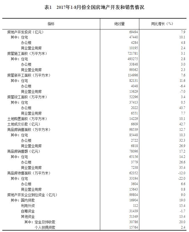 8月末,商品房待售面積62352萬(wàn)平方米,比7月末減少1144萬(wàn)平方米。其中,住宅待售面積減少987萬(wàn)平方米,辦公樓待售面積減少43萬(wàn)平方米,商業(yè)營(yíng)業(yè)用房待售面積減少87萬(wàn)平方米